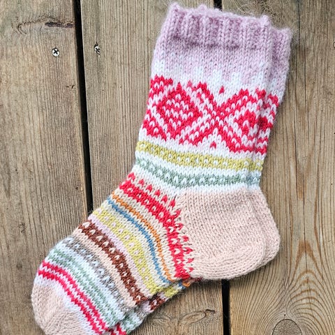 Mariussokker strikket i drops karisma (100%ull). Evt frakt kommer i tillegg.