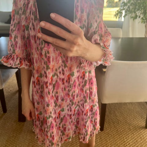 Søt kjole som sitter veldig pent på. Pent brukt og har ingen bruksmerker. Størrelsen er romslig så den vil passe en small til medium.
