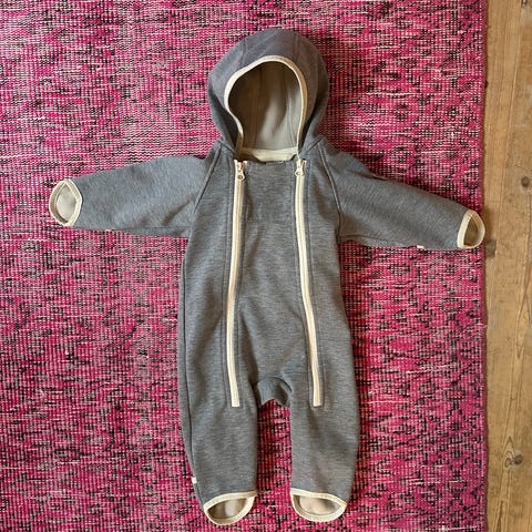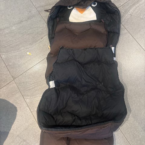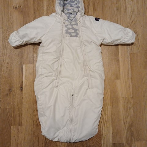 Vogndress/pose fra Polarn o pyret. Hette, fleecefor, votter til hendene og sovepose rundt føttene. Brukt i noen måneder av ett barn. Ingen bruksmerker.