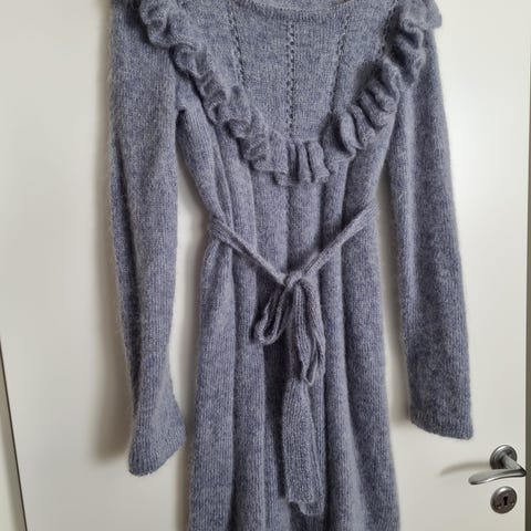 Hjemmestrikket genser med mange fine detaljer. Størrelse S-M. Strikket i akryl, og derfor passer for noen som ikke bruker ull.
