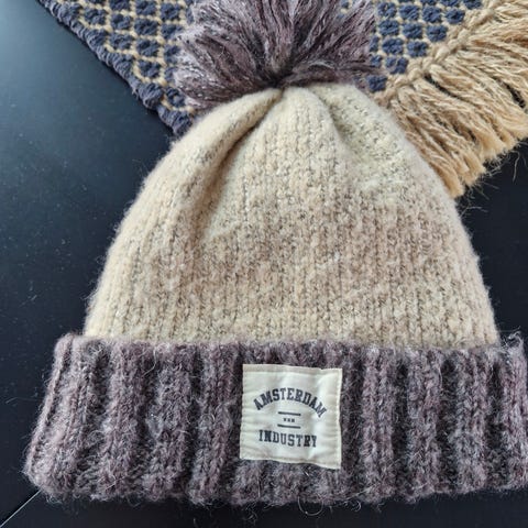 Apre Ski Hat er en retroinspirert lue med stor oppbrett i halvpatent strikk.