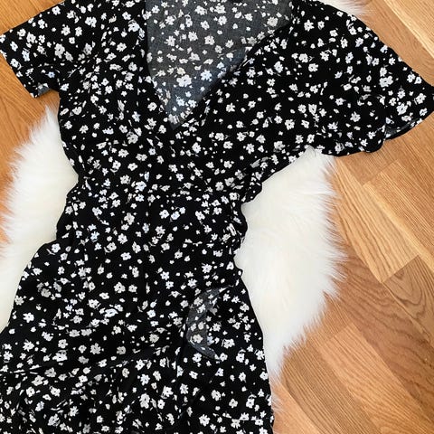 Snerten kort omslags kjole👗 veldig fin med nydelige blomster, den er løs og fin og perfekt for en sommerdag🏖️🌸