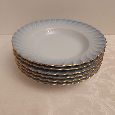 4 ubrukte tallerkener, 4 suppeskåler og 4 asjetter til Marianne serviset fra Firkløveren. Serviset er gått ut av produksjon