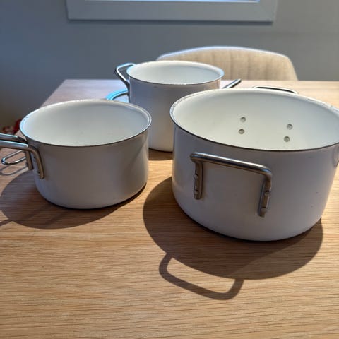 Flotte kjeler med slip-let belegg i lekker sort farge.