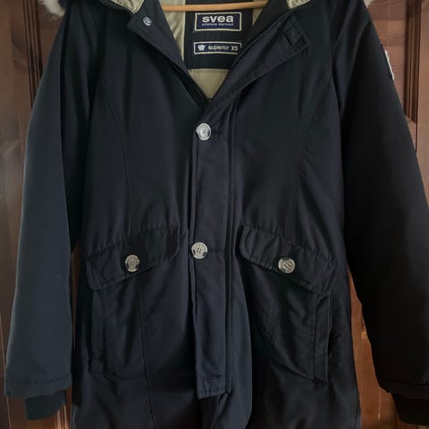 Pent brukt Svea dunparkas med fuskepels selges billig da jeg må innse at det ikke er riktig størrelse. Kun brukt et par ganger.