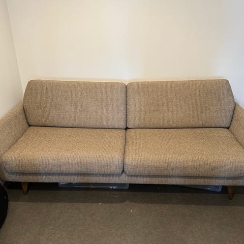 Godt brukt sofa med slitent armlene men, fortsatt fult brukbar