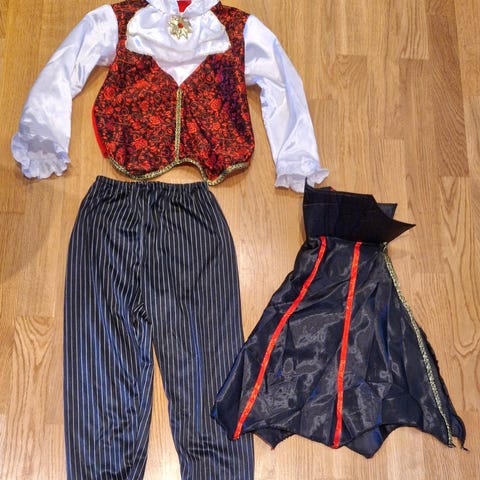 Vampyr-kostyme til halloween og karneval. Størrelse 7-10 år. Må hentes, sendes ikke. Se også våre andre annonser med kostymer.