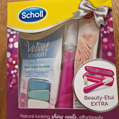 Scholl Velvet Smooth Electronic Nail Care System er en elektronisk neglefil for både finger- og tånegler. Det elektriske neglefil-settet kan både file og/eller polere neglene dine. Det er 3 forskjellige hoder i pakken: 1 hode til sliping, 1 til polering og 1 til pussing. Det er 2 hastigheter på neglefilen. Bruk den som et effektivt hjelpemiddel til god fotpleie, eller til å gi hendene en vakker manikyr.