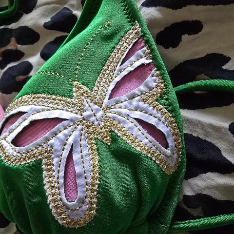 Lekker bikinitopp med blomster og pushup fra Hunkemøller. BH-en er størrelse 80C, og er aldri brukt. Materiale: 87% polyester, 13% elastan. Spør om del 2 i chat. Jeg sender stort sett alltid første virkedag etter mottatt penger for frakt :)