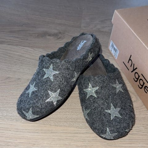 Tåva tøfler. Lengde inni ca 19 cm mulig å strekke litt. Omkrets 29 cm