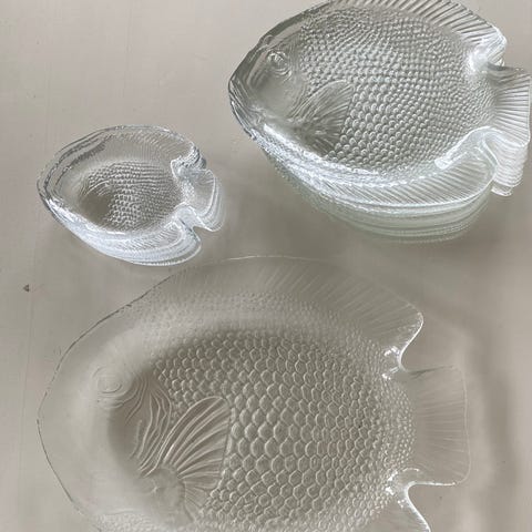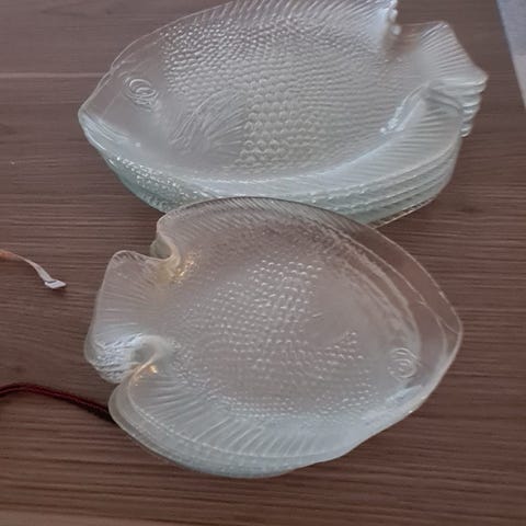2 serveringsfat, 9 tallerkener og 3 små fat selges samlet for 400.