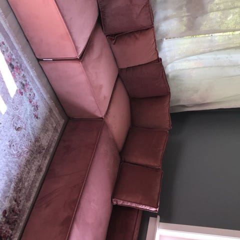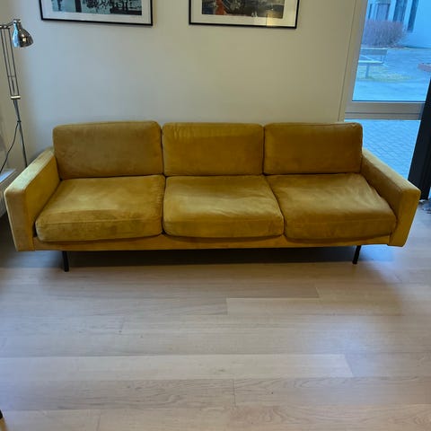 Sofa i nydelig oransje fløyel. Helt strøken. Kun stått til pynt.