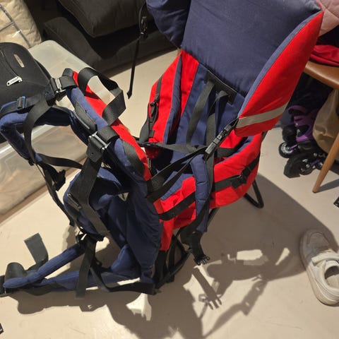 Fin å ha på hytta, hjemme, på tur, som tar liten plass. Alt av støtte belter og sikkerhet belter fungerer som skal. Har vært i brukt for noen fjelltur. Fortsatt frisk rød farge!