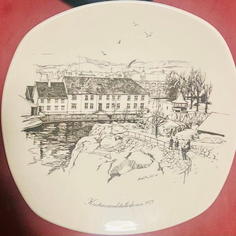 Figgjo Norway, platte m/oppheng, Kristiansands tallerkenen 1983, Lagmannsholmen. Bredde: 20cm. (Se gjerne mine andre annonser også)