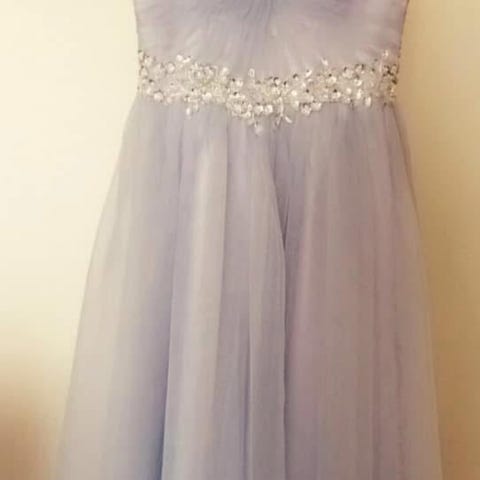Jeg leier ut utrolig fin ballkjole i lilla farge med paljetter . Den passer de fleste ( XS-S-liten M) pga snøring i ryggen. Datteren var 158 cm høy da hun brukte kjolen .
