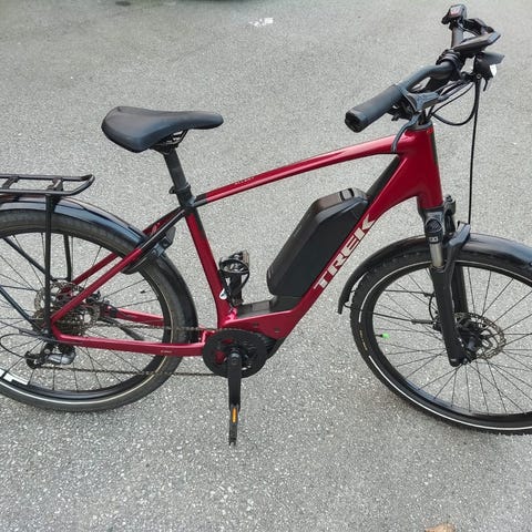 Jeg selger min Trek TM1+ elsykkel, som er perfekt for både pendling og fritidsturer. Denne hybrid elsykkelen har en Bosch Active Line-motor som gir deg ekstra hjelp opp til 25 km/t, noe som gjør turene dine både lettere og morsommere.