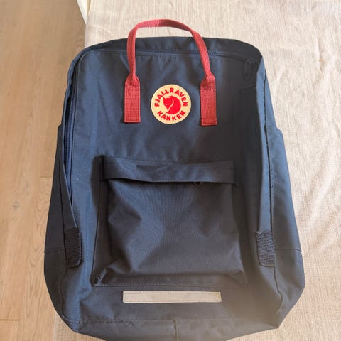 Sekken er sort og rød.