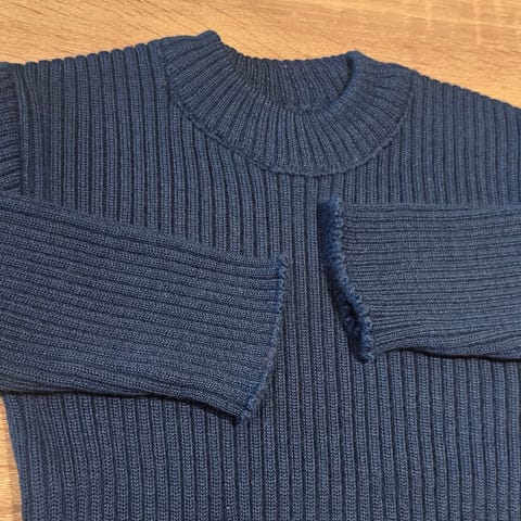 Pen marineblå strikkegenser fra WOW med perler på ermene. Fin og pyntete. Genser er str M-L (158-164). Pent og lite brukt. Fin mørk marineblå farge. Røykfritt og dyrefritt hjem. Kan sende mot porto. Se gjerne mine andre annonser for flott merketøy og sko og få kombinert porto ved flere kjøp.