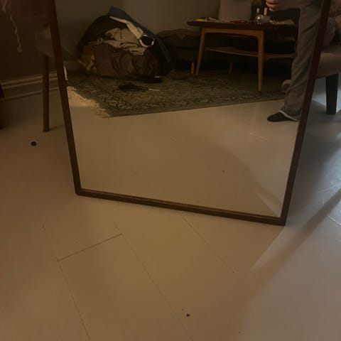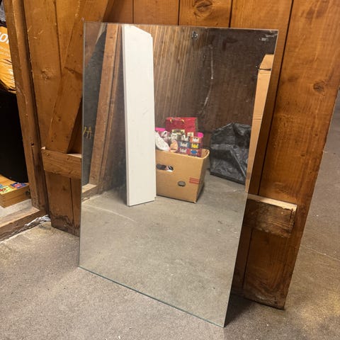 Gir bort et kvadratisk speil med fasett 66 x 66 cm. Speilet er pent brukt og har ingen bruksmerker.