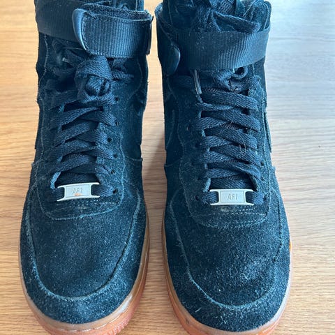 Selger et par originale Nike Air Force 1 High Tops. Velbrukt med klassisk design og komfort, perfekte som hverdagslige sneakers eller et vintage-prosjekt for sneaker-entusiaster. Skoene har slitasje som vist på bildene, men har fortsatt masse liv igjen. Et must-have for deg som liker ikoniske sneakers med historie.