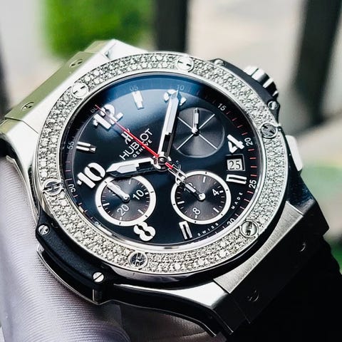 Flott eksemplar av Hublot Big Bang selges komplett med det som måtte trengs. Service utført i 2025 januar