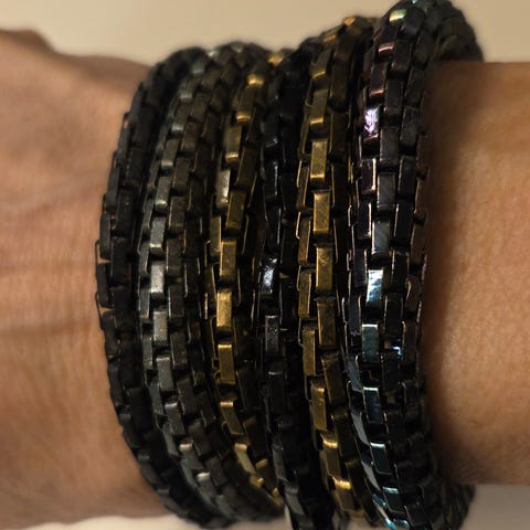 Tre pene hårbøyler selges samlet. Gull, bronse og ett svart. 3 cm bredde. De er bare prøvd på, som nye.