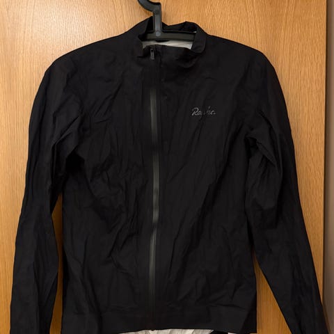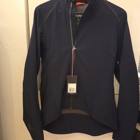 Blå / lilla dame regnjakke fra rapha pent brukt med ingen ryper eller hull, litt synlig sprutemerke på ryggen som kanskje kan vaskes ut. Har en lømme med glidelås og glidelås på armer er str S og er tettsittende.