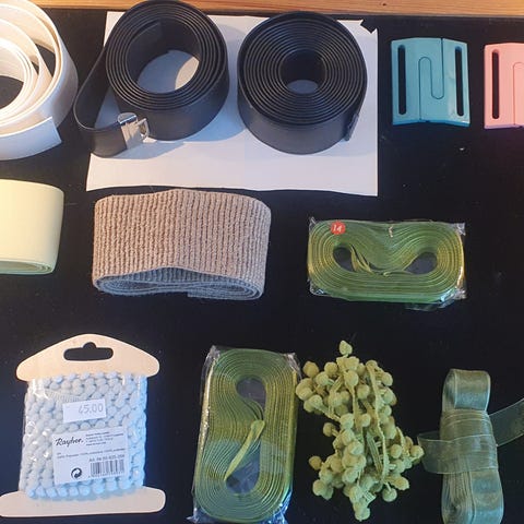 Rester av bånd i flere farger. Har ikke flere mål, sendes kun i vanlig post og porto er inkludert i prisen