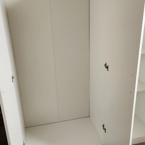Platsa skap fra IKEA med dører og garderobestang. Kan følge med en ekstra garderobestang om ønskelig.