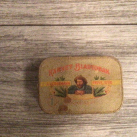 Gamle tobakksesker i blikk tilsalgs. Kr 200,- for begge.