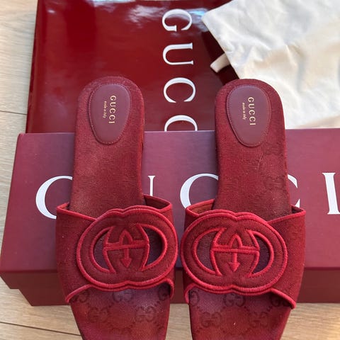 Nesten nye sorte Gucci slippers i Str. 37 1/2 selges