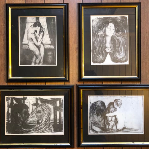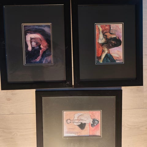 Selges også enkeltvis i egne annonser. Mangler glass i ramme til ett av de mindre. Rammestørrelser: 39x23 og 26x28 for de to minste.