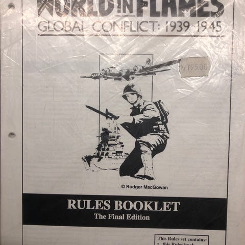 Selger noen ubrukte ekspansjoner til brettspillet World in Flames. Alle kommer i ziplocks med upunchede brikker. Utgitt av Australian Design Group.