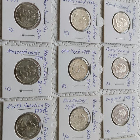 Leveres i albumside. 23 sølvmynter med .500- eller .925-sølvinnhold. Selges samlet. Kan sendes.