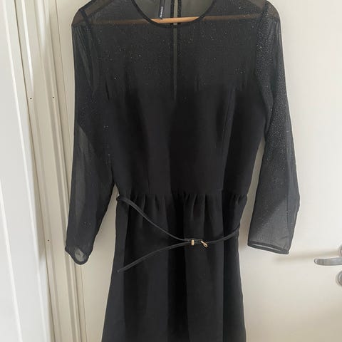 Sort kjole i str. 40 fra Vila. Brukt én gang. Strikk i midjen, knepping i nakken.