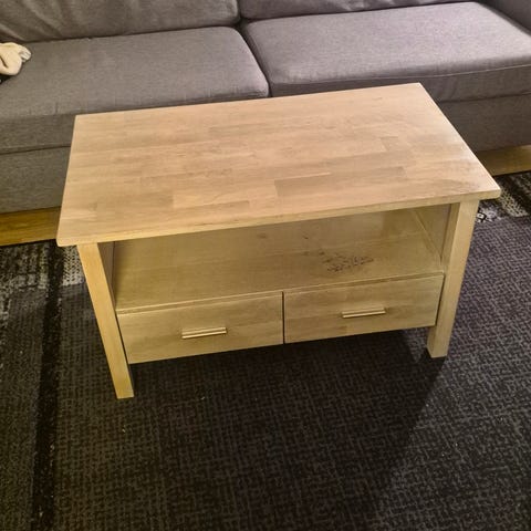 Litt knirk i sofabordet, men trur det kan fikses bare man stramme litt!