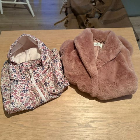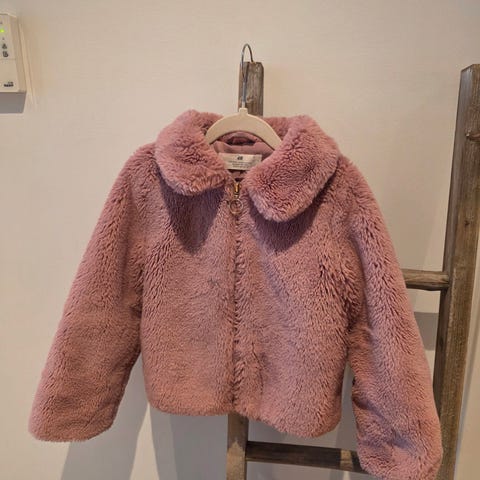 Pen «bamsejakke» i rosa fra H&M. Veldig pent brukt.Har bandeleder på hetta.Hetten kan tas av.