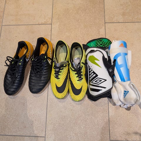 Div. fotball-utstyr str L-XL / innendørssko 44,5.