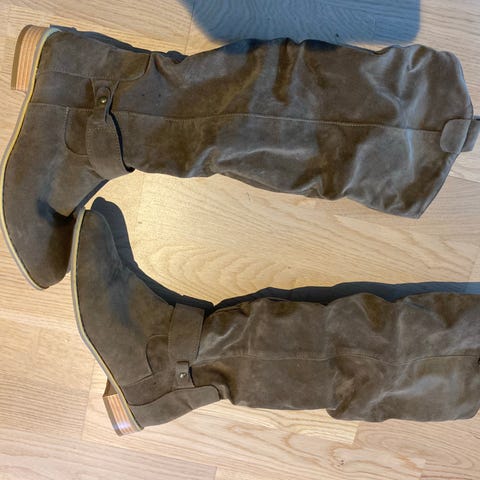 Litt slitt i skaftet innvendig, men veldig gode å ha på. Derfor selges de rimelig.