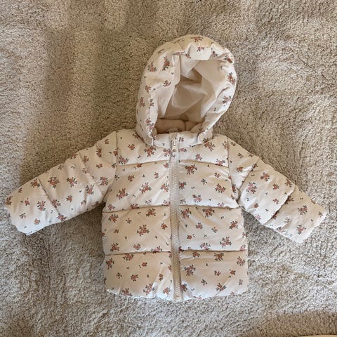 Helt ny boblejakke fra HM i str 74. Fått i gave, aldri brukt. Hetta er avtakbar med borrelås.