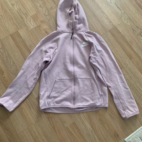 Selger Nike hettegenser i hvit. Størrelse XS, men lang i størrelsen så passer S/M. Kun strammere nederst.