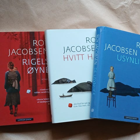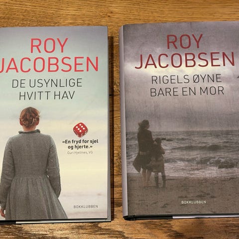 "Borte" av Lisa Gardner og "De usynlige" av Roy Jacobsen selges samlet for 50kr. En for 25kr.