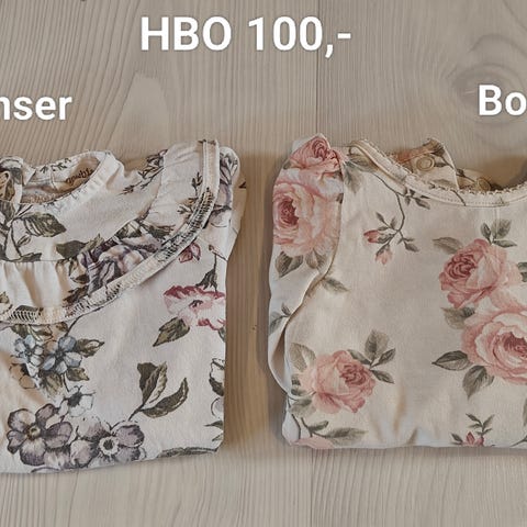 Fire fine bodyer fra Petit bateau. De er i størrelse 60 cm. En er omslag. 100 prosent bomull