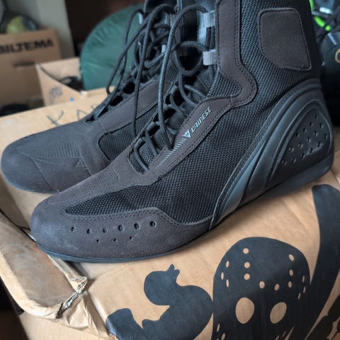 Flotte MC-hansker i skinn i str 9. Lite brukt, ingen skader.