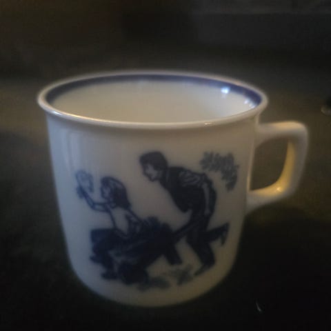 9 samlekopper fra Porsgrund Porselen 1970-79 (1971 er solgt, lite skår på foten på 1976). Ser ellers helt nye og ubrukte ut.