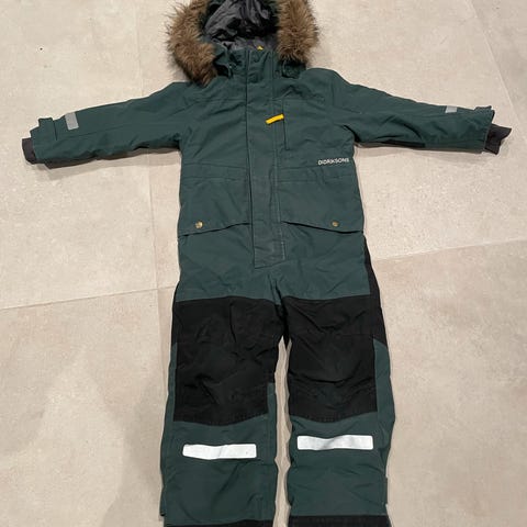 Pent brukt vinterdress fra Didriksons str 90. Dressen har vært best i test! Ingen nevneverdig slitasje eller hull. Voksesømmene er ikke klipt. Dressen kan utvides til 100 cm.