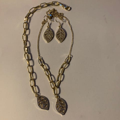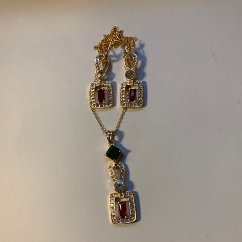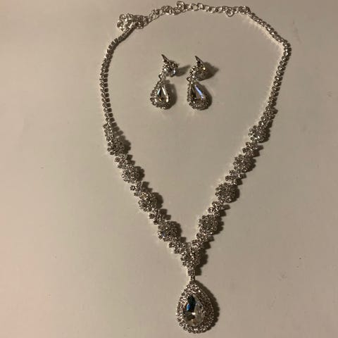 Smykkesett med øredobber og halskjede.