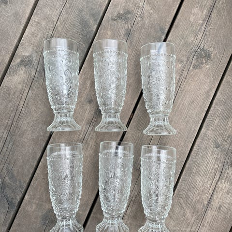 Elegante glass med stett. Merket med "Italy" under. Alle glassene er i god stand. Høyden på glasset er 13 cm, og diameter er litt over 8 cm. Martiniglass?