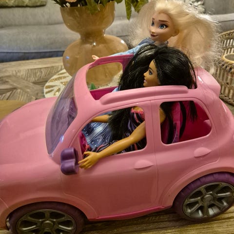 Pent brukt leke bil for store dukker. Den er ikke lekt mye med, stort sett bare stått til pynt.