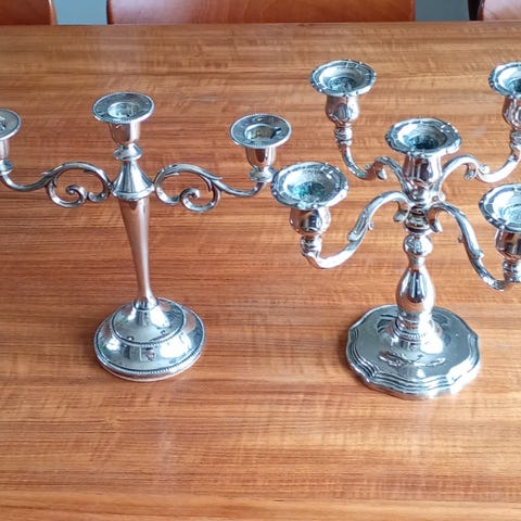 Meget pent brukt sølv kandellaber i aluminium 5 armet.